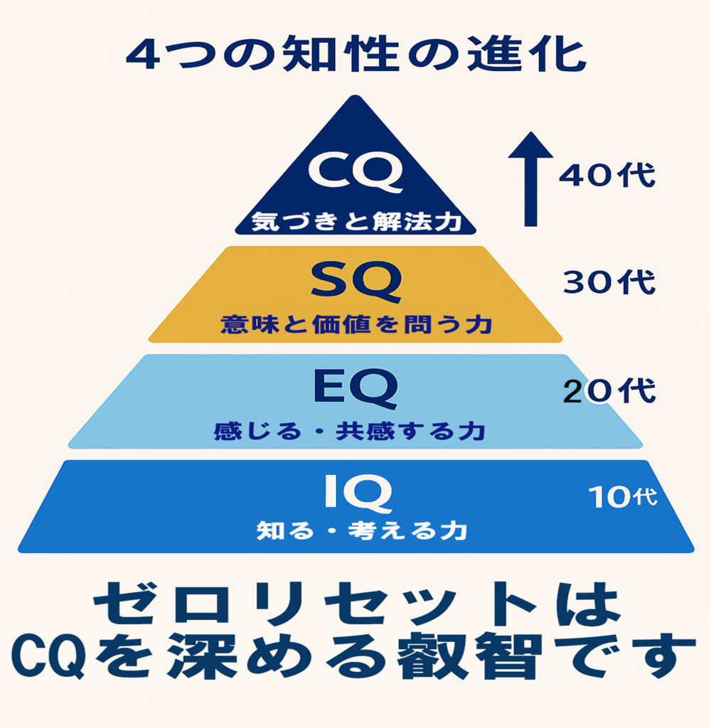 ゼロリセットは、その最終層である CQ(意識知性)の実践体系 です。