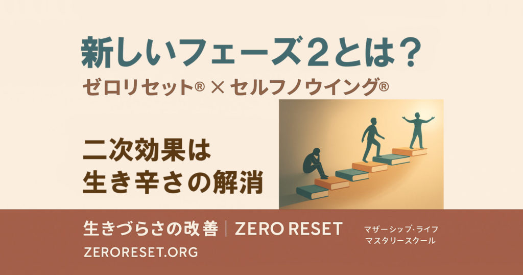 なお、ゼロリセット®には、講座を展開してきた時代としての「フェーズ1」と「フェーズ2」があります。